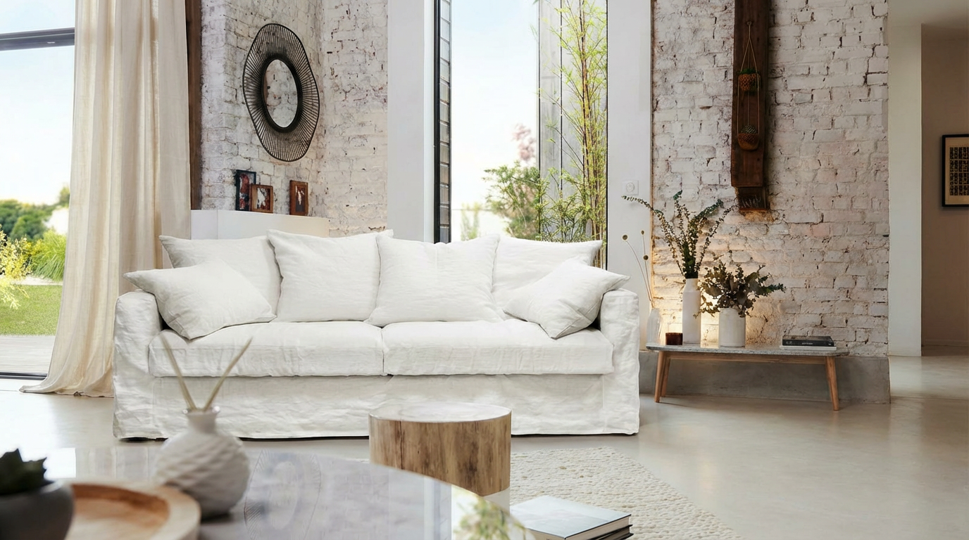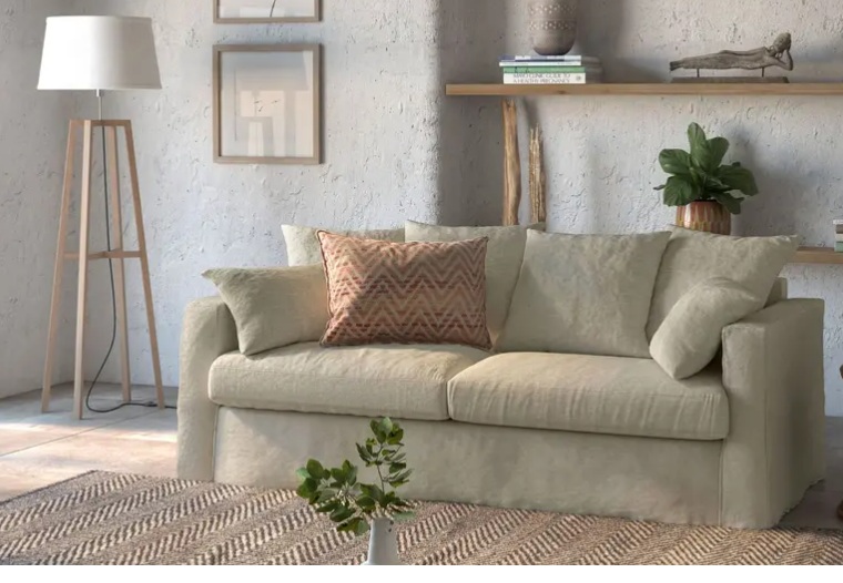 | Structure | Hêtre massif, panneaux de fibres et panneaux de particules, recouvert d’une housse en foamé blanc agrafée |