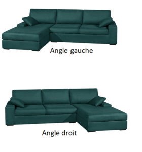 Canapé déhoussable Fabrication 100% Française Home Spirit. Garantie 2 ans sur le revêtement tissu Sens du canapé (se mettre en face de votre canapé) : ANGLE GAUCHE la méridienne se situe à gauche. |